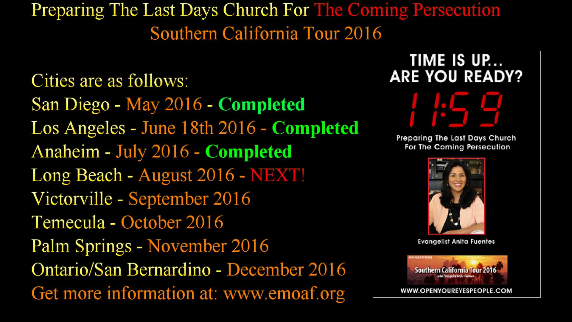 Next Stop! AUGUST 20th 2016 - LONG BEACH, CA I personally invite you to make plans to join me in the name of Jesus at our next stop in the Southern California Tour: